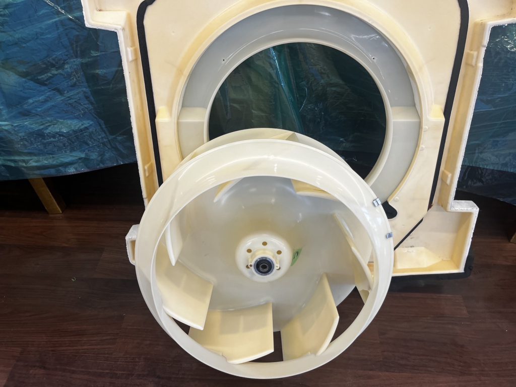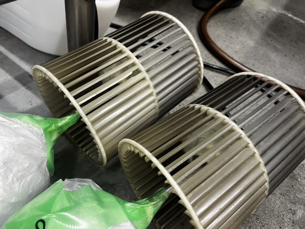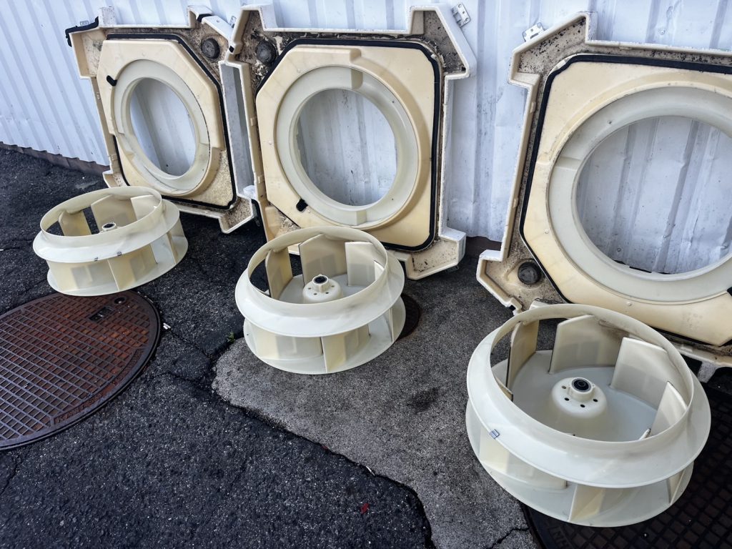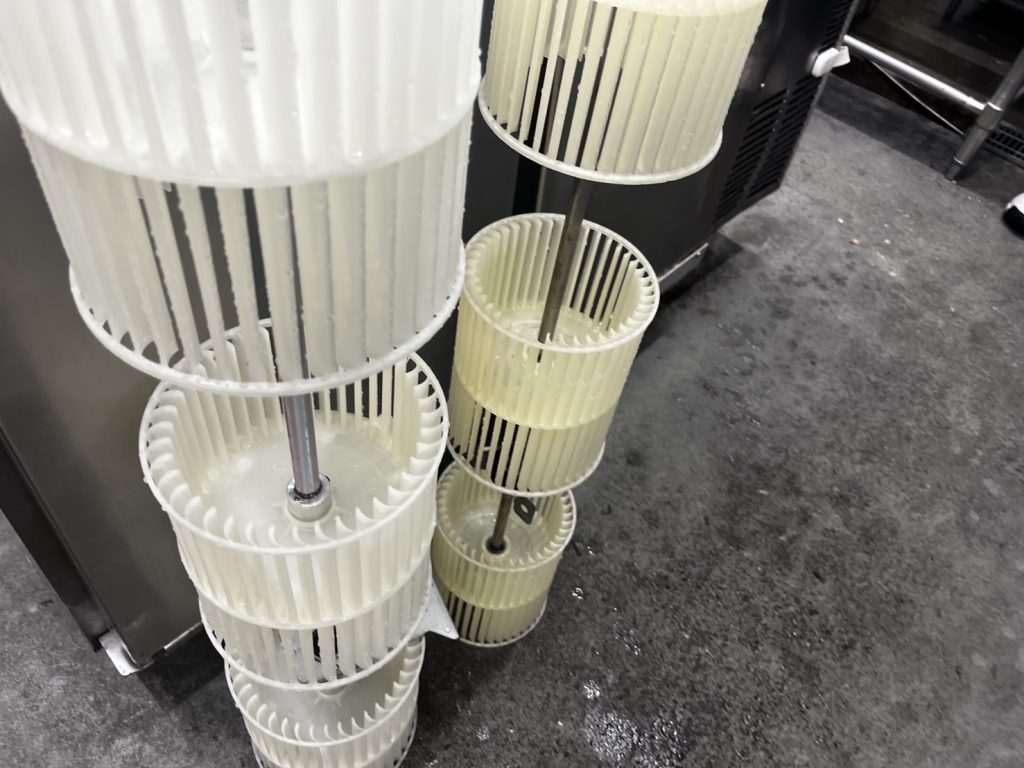 ファンやケーシング、ドレンパンなどを完全に分解し、各パーツを一つずつ丁寧に洗浄しました。