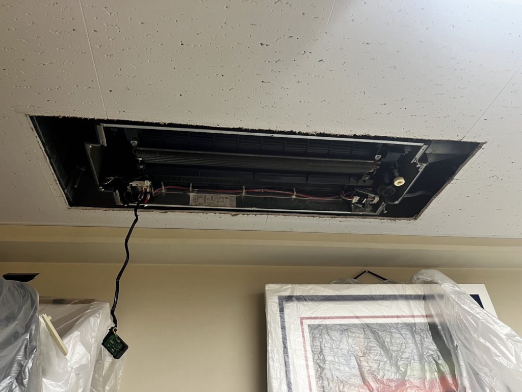 この季節、冷房使用時の排水トラブルはとても多く、特に天井埋込型ではドレンポンプの不調が原因になることがよくあります。
