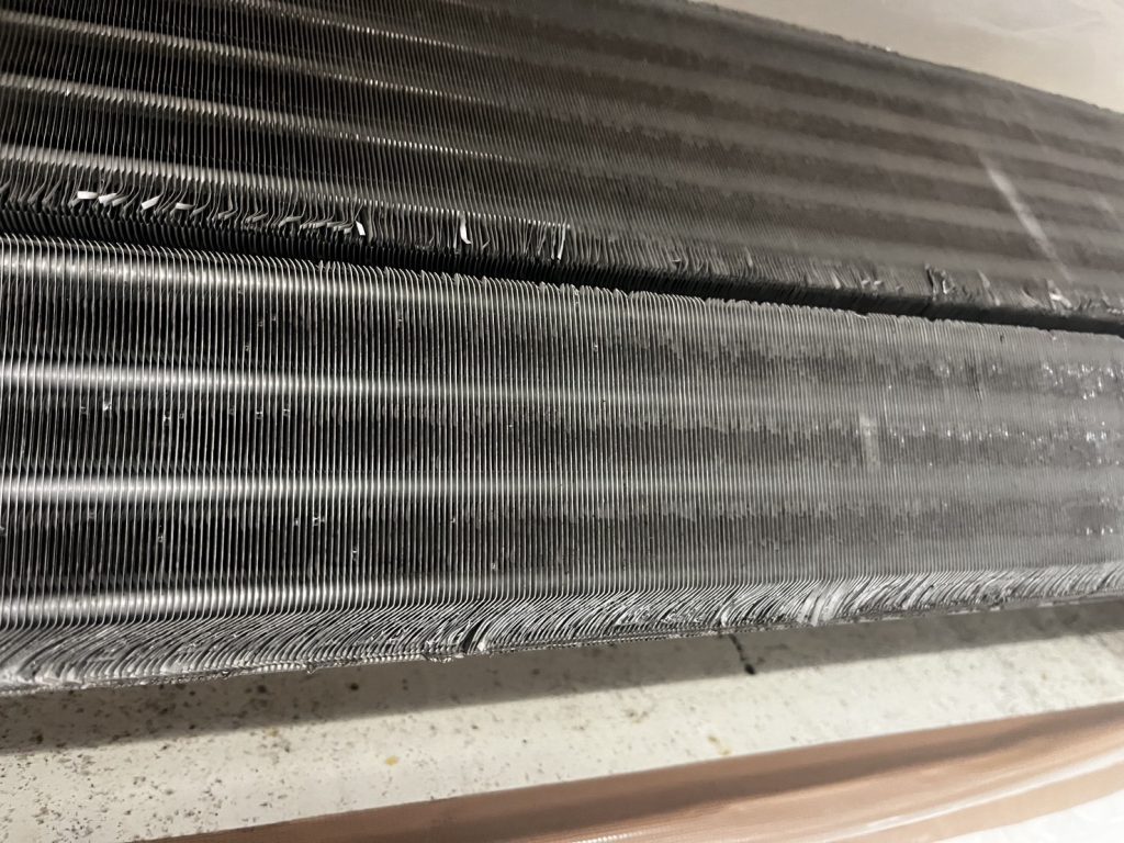 洗浄後の熱交換器。フィンの目詰まりが取れて熱交換効率が回復。