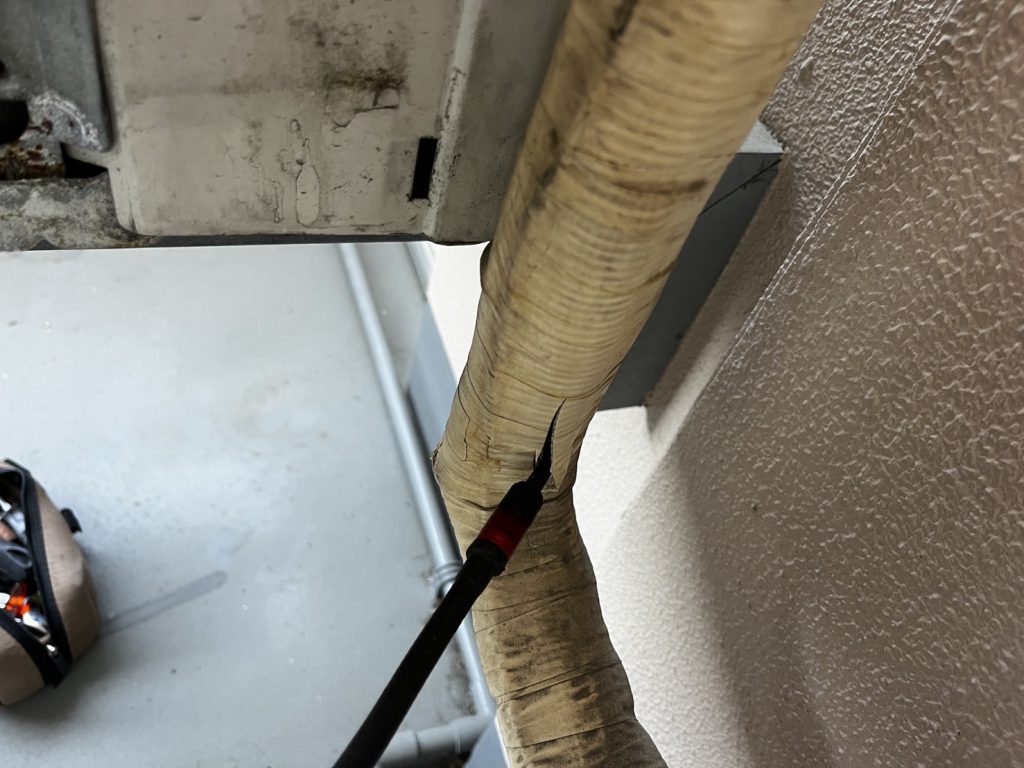 「冷えが弱い」「運転するとすぐ止まる」―そんな時は冷媒(ガス)不足のサインかもしれません。今回はマンションでよくある隠蔽(いんぺい)配管部のガス漏れに対応し、配管の一部入替~壁の復旧(ボード補修・クロス張り)まで同日で仕上げた事例です。