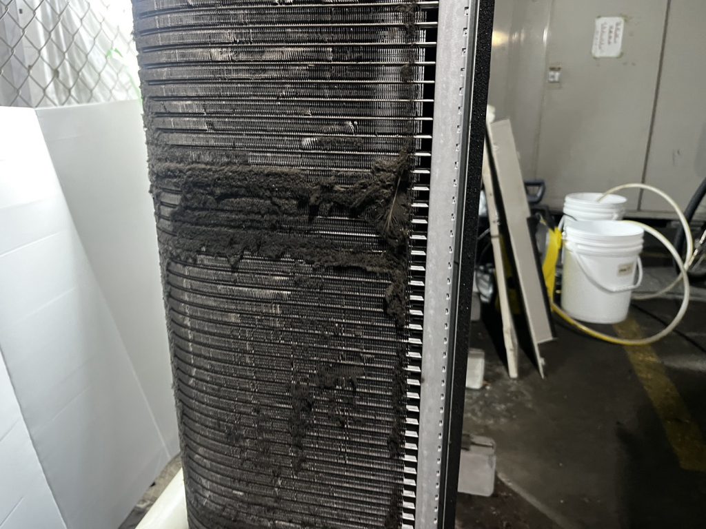 - 高圧洗浄でフィン間の汚れを丁寧に洗い流し