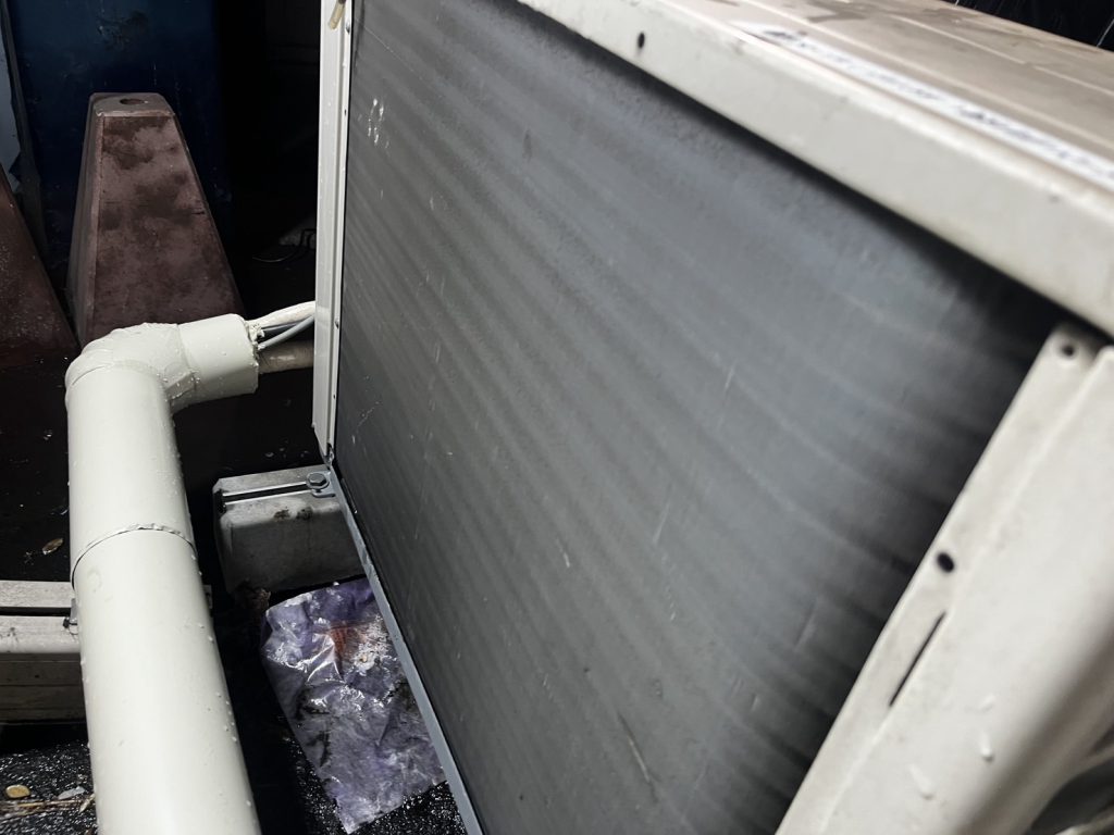 - フィンの目詰まりはコンプレッサー過熱や故障の原因になります。