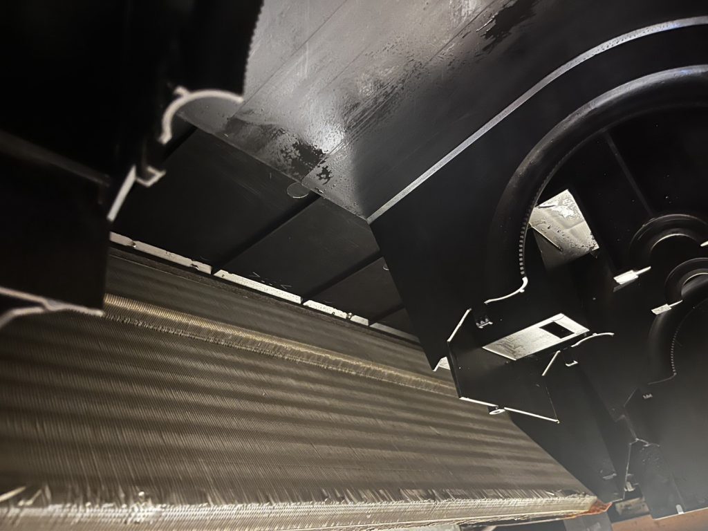 年に一度の薬品洗浄をおすすめします。特に飲食店では油煙が多く、効率低下や水漏れの原因にもなります。