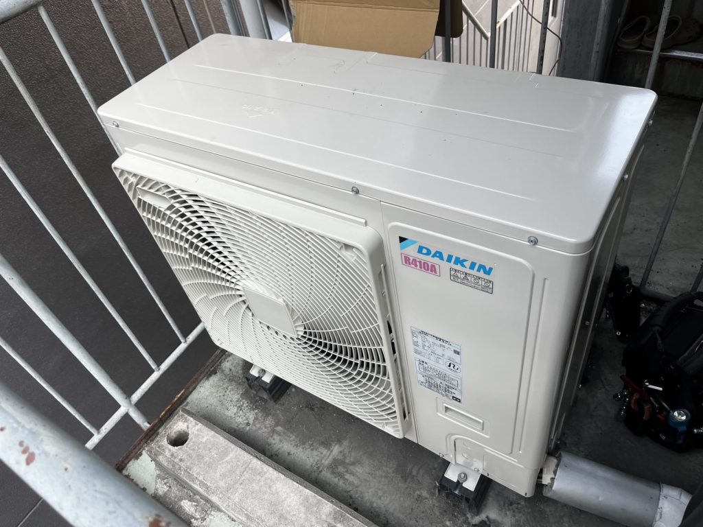 室外機のエラー停止しておりました。点検の結果、修理よりも入替が適切と判断。あわせて分岐管もビル建築当時のままだったため同時に更新しています。