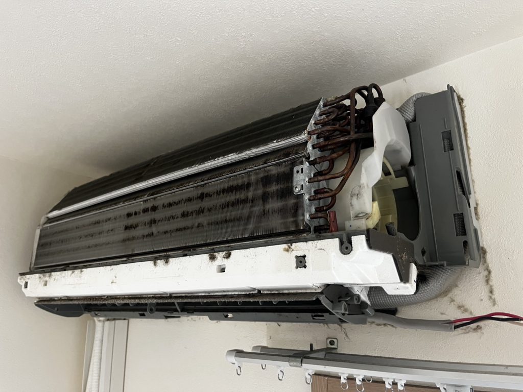 退去時はハウスクリーニングが入りますが、エアコン内部までは完全に洗浄されないケースもあります。
