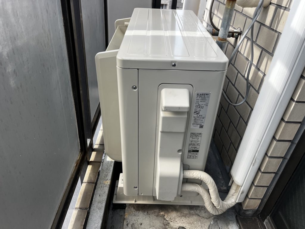 また、室外機設置場所のベランダが狭く、排気した熱風を再び吸い込んでしまう「ショートサーキット」が発生しやすい環境でした。