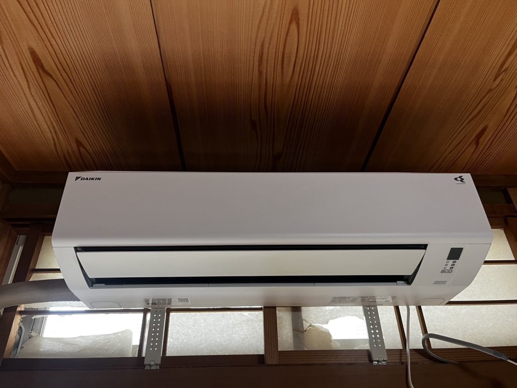 これまで寝室にはエアコンが設置されておらず、夏場や冬場の環境改善のため、新たに設置+電気工事を含めて対応いたしました。